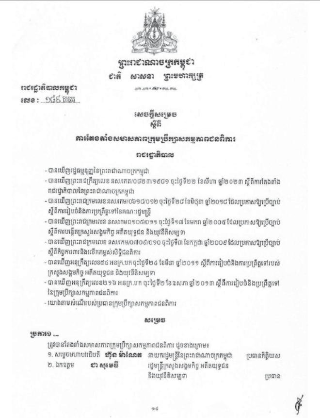 - ស្តីពី ការតែងតាំងសមាសភាព ក្រុមប្រឹក្សាសកម្មភាពជនពិការ (ថ្មី)