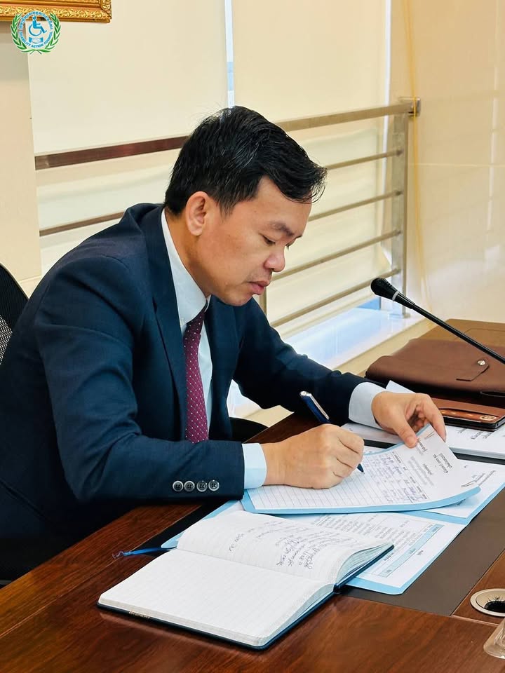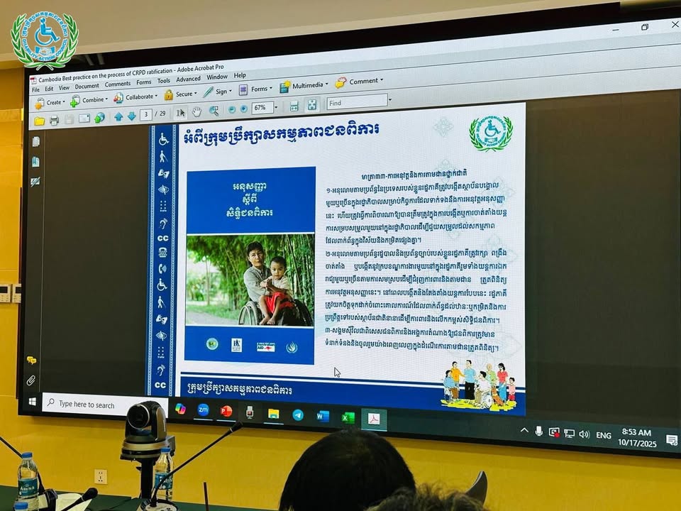 កិច្ចប្រជុំផ្សព្វផ្សាយផែនការយុទ្ធសាស្ត្រជាតិស្តីពីពិការភាពឆ្នាំ២០២៤-២០២៨ ជូនសមាជិក សមាជិកា ក្រុមការងារសកម្មភាពជនពិការទីស្តីការគណៈរដ្ឋមន្ត្រី ទីស្តីការគណៈរដ្ឋមន្ត្រី៖ ថ្ងៃសុក្រ ១០រោច ខែអស្សុជ ឆ្នាំម្សាញ់ សប្តស័ក ព.ស ២៥៦៩ ត្រូវនឹងថ្ងៃទី១៧ ខែតុលា ឆ្នាំ២០២៥ ឯកឧត្តម អ៊ុង សម្បត្តិ អគ្គលេខាធិការ និងជាសមាជិកអចិន្រ្តៃយ៍ក្រុមប្រឹក្សាសកម្មភាពជនពិការ បានអញ្ជើញជាគណៈអធិបតីក្នុងកិច្ចប្រជុំផ្សព្វផ្សាយផែនការយុទ្ធសាស្ត្រជាតិស្តីពីពិការភាពឆ្នាំ២០២៤-២០២៨ ជូនសមាជិក សមាជិកា ក្រុមការងារសកម្មភាពជនពិការទីស្តីការគណៈរដ្ឋមន្ត្រី ក្រោមអធិបតីភាព ឯកឧត្តម អេង កុកថាយ រដ្ឋលេខាធិការនិងជាប្រធានក្រុមការងារសកម្មភាពជនពិការទីស្តីការគណៈរដ្ឋមន្ត្រី តាមរយៈការគាំទ្រពីកម្មវិធីអភិវឌ្ឍន៍សហប្រជាជាតិ (UNDP)។ ពិធីនេះ មានការចូលរួមពីសំណាក់ ឯកឧត្តម លោកជំទាវ ថ្នាក់ដឹកនាំទីស្តីការគណៈរដ្ឋមន្ត្រី លោកស្រី មាស រត្ថា ប្រធានផ្នែករដ្ឋបាលនិងហិរញ្ញវត្ថុ លោក លោកស្រីជាអនុប្រធាន សមាជិក សមាជិកា ក្រុមការងារសកម្មភាពជនពិការទីស្តីការគណៈរដ្ឋមន្ត្រី និងអ្នកពាក់ព័ន្ធ សរុបចំនួន ១៩នាក់ (ស្រី ៦នាក់ ជនមានពិការភាព ១នាក់)៕