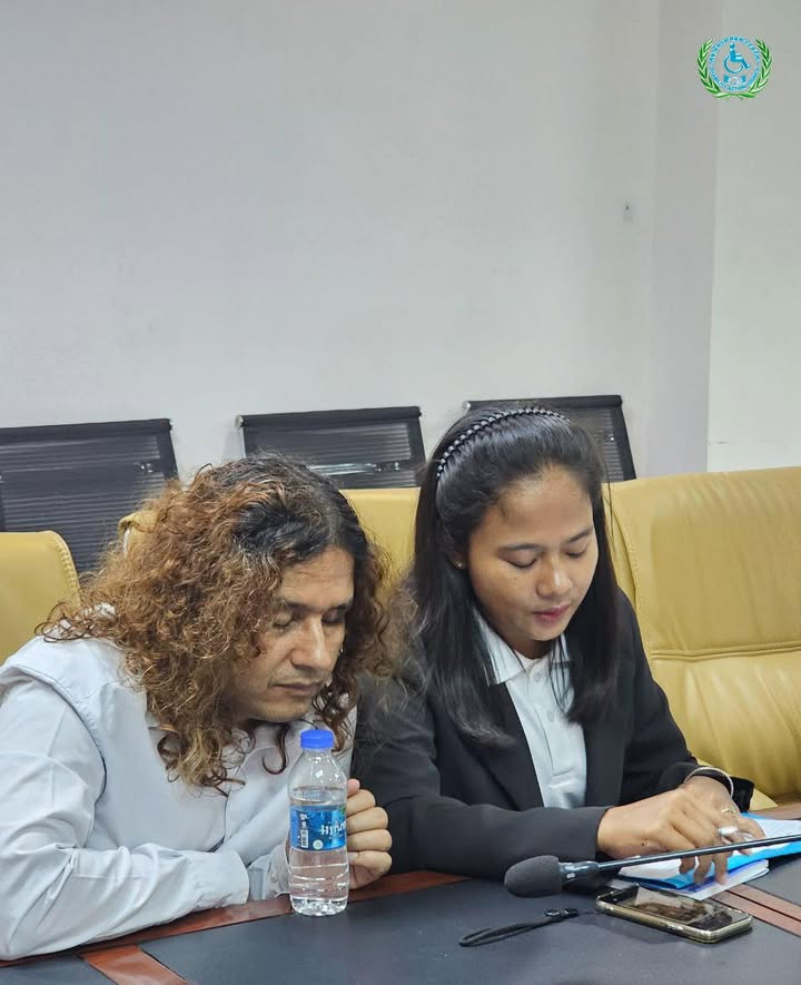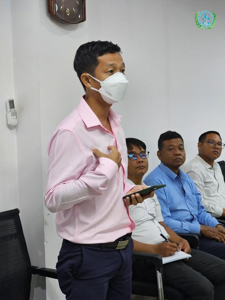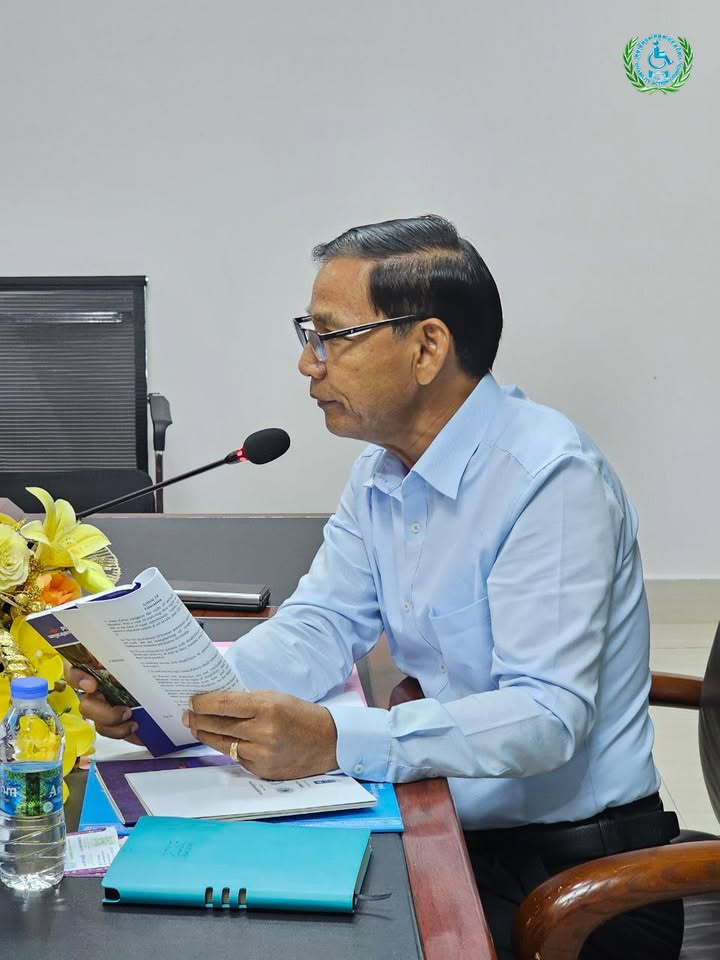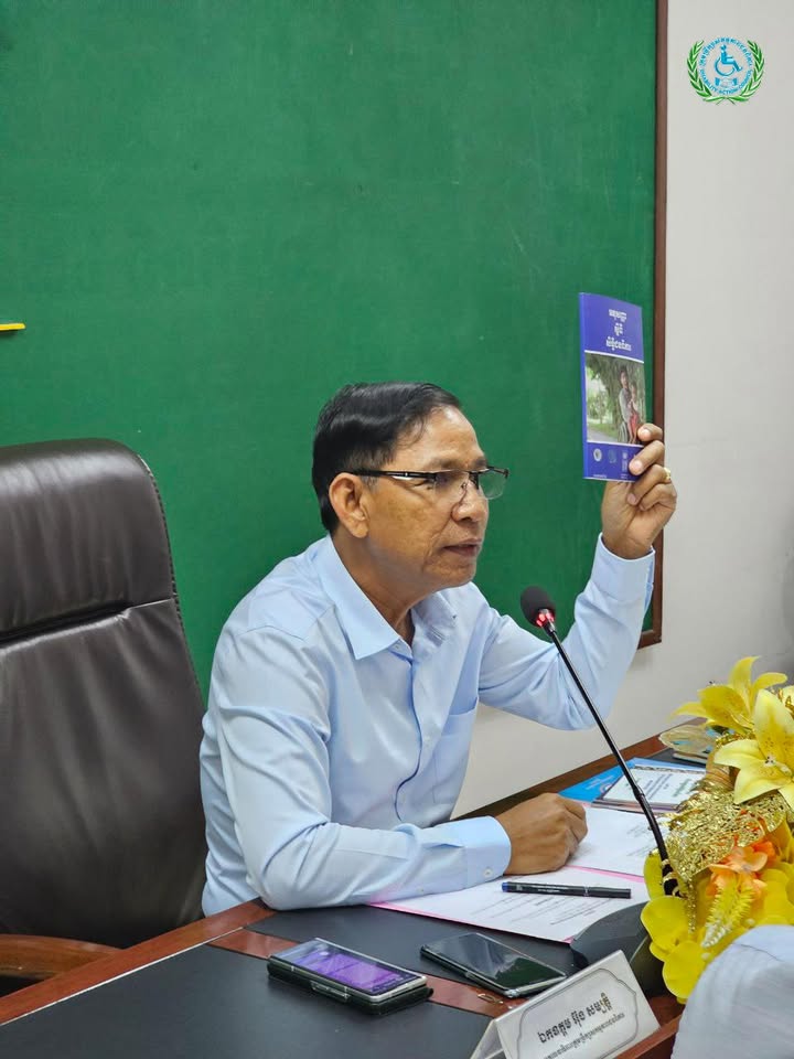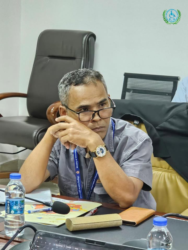 កិច្ចប្រជុំពិគ្រោះយោបល់ស្តីពីការអភិវឌ្ឍន៍ភាសាសញ្ញានៅកម្ពុជា ទីស្ដីការក្រសួង ស.អ.យ ៖ រសៀលថ្ងៃសុក្រ ៣កើត ខែកត្តិក ឆ្នាំម្សាញ់ សប្តស័ក ព.ស.២៥៦៩ ត្រូវនឹងថ្ងៃទី២៤ ខែតុលា ឆ្នាំ២០២៥ ឯកឧត្ដម អ៊ុង សម្បត្តិ អគ្គលេខាធិការក្រុមប្រឹក្សាសកម្មភាពជនពិការ ដឹកនាំកិច្ចប្រជុំពិគ្រោះយោបល់ស្ដីពីការអភិវឌ្ឍន៍ភាសាសញ្ញានៅកម្ពុជា។ កិច្ចប្រជុំនេះមានការអញ្ជើញចូលរួមពី ឯកឧត្ដម សរ បូរីរក្ស នាយកវិទ្យាស្ថានជាតិសង្គមកិច្ច តំណាងវិទ្យាស្ថានជាតិអប់រំពិសេស វិទ្យាល័យអប់រំពិសេសភ្នំពេញថ្មី វិទ្យាល័យអប់រំពិសេសច្បារអំពៅ មន្ត្រីនៃអគ្គលេខាធិការដ្ឋានក្រុមប្រឹក្សាសកម្មភាពជនពិការ តំណាងតំណាង UNDP តំណាង OHCHR តំណាងកម្មវិធី ACCESS2 តំណាងអង្គការ DDP សរុបចំនួន ២០នាក់ (ស្រី ៥នាក់ ជនមានពិការភាព ៤នាក់)៕
