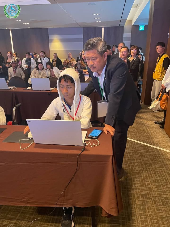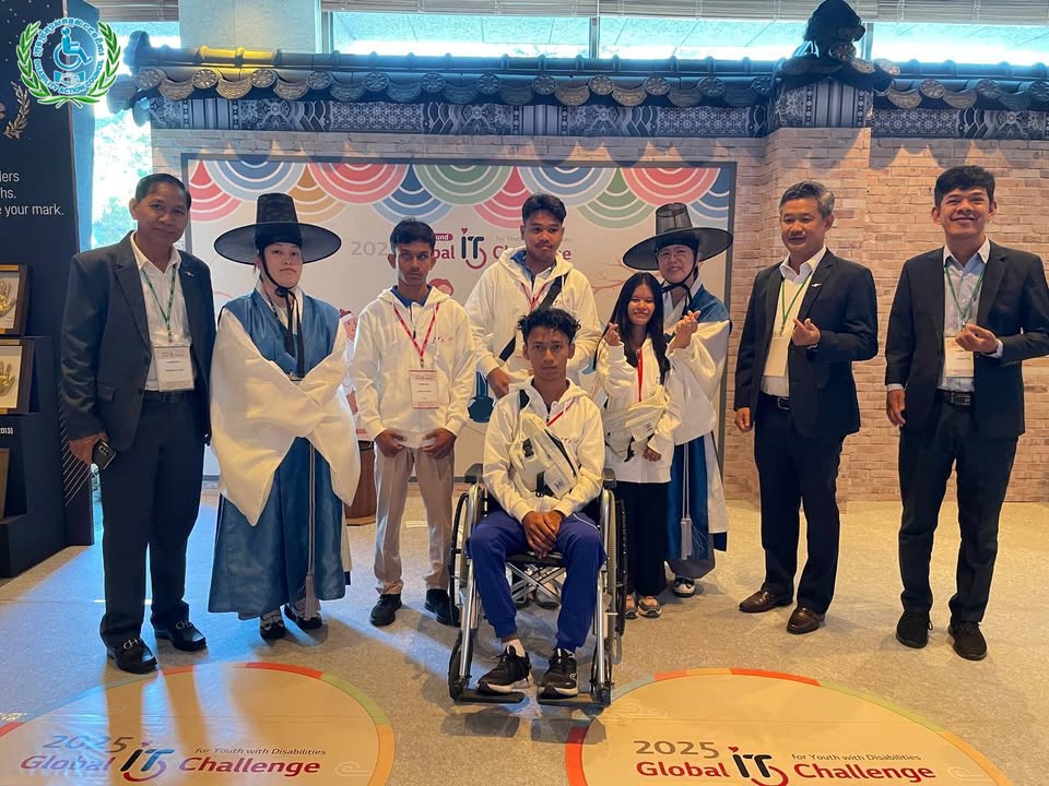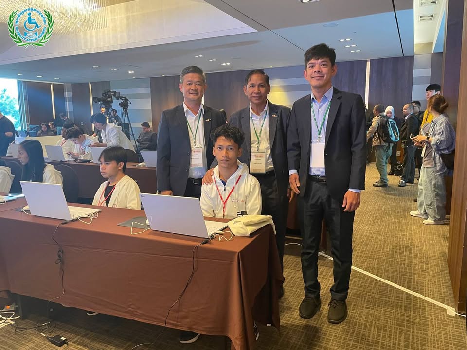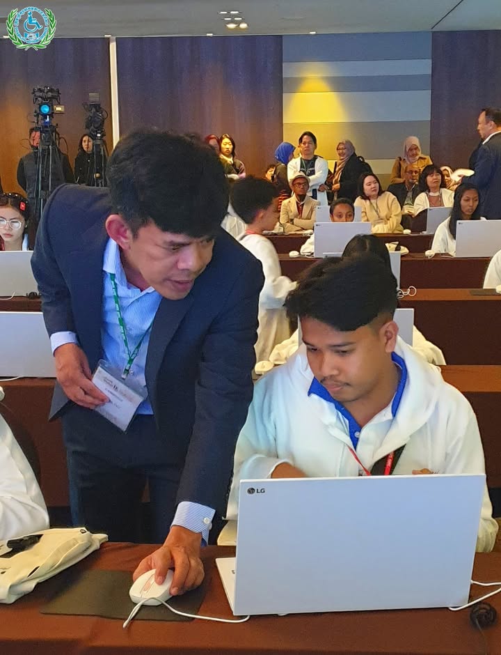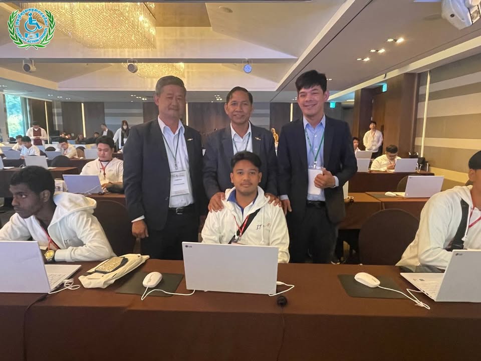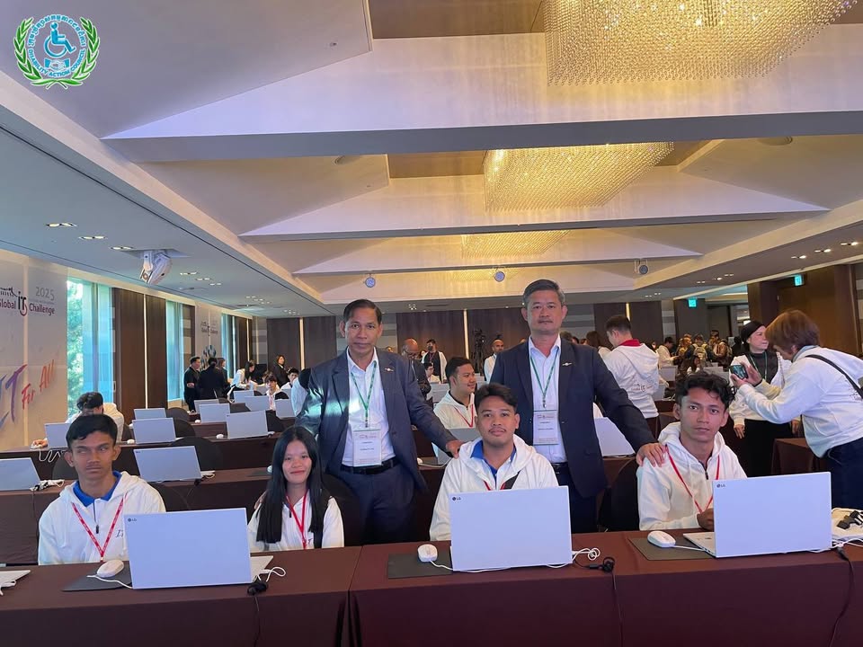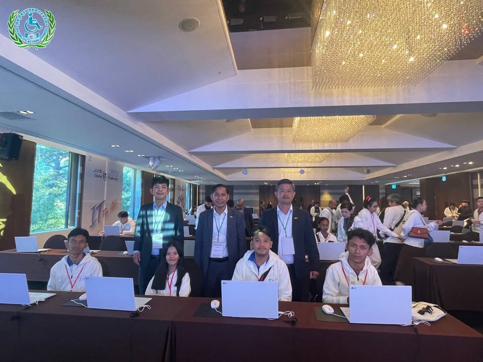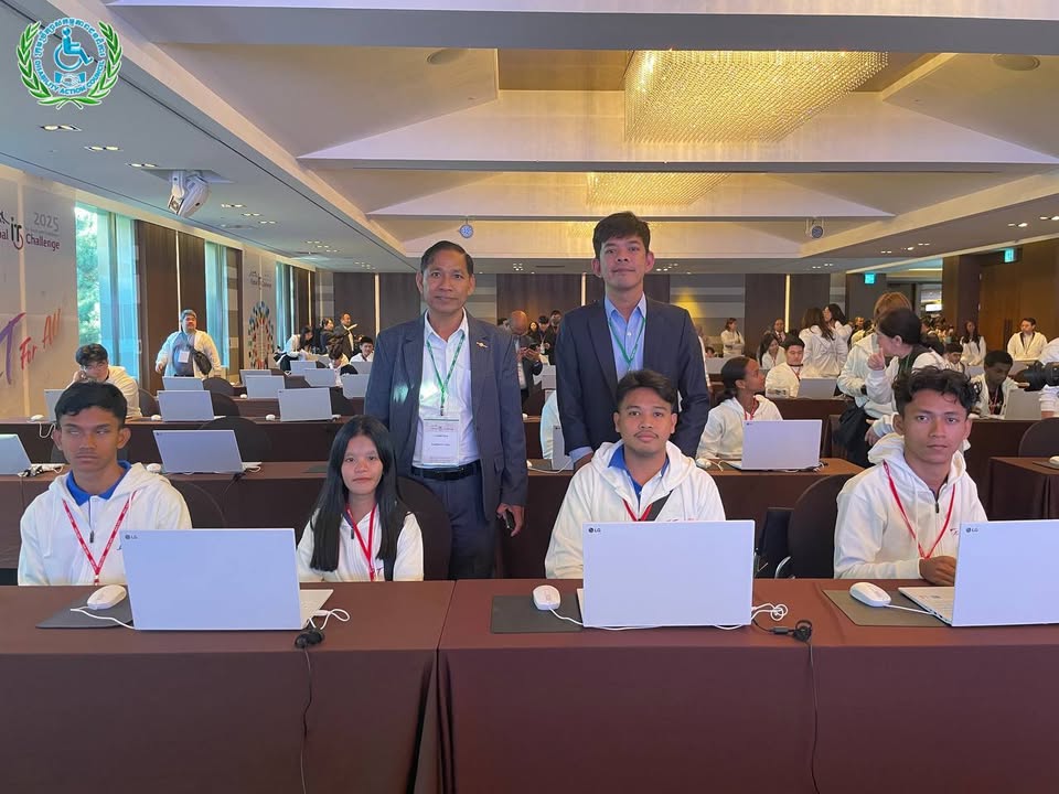 យុវជនមានពិការភាពកម្ពុជានិងប្រតិភូ ចូលរួមពិធីបើកនិងប្រកួតប្រជែងជាសកលផ្នែកព័ត៌មានវិទ្យា (IT) ឆ្នាំ២០២៥ ទីក្រុងអ៊ូលសាន, កូរ៉េ ៖ ថ្ងៃពុធ ទី២៩ ខែតុលា ឆ្នាំ២០២៥ ឯកឧត្ដម ជា សុមេធី រដ្ឋមន្ដ្រីក្រសួងសង្គមកិច្ច អតីតយុទ្ធជន និងយុវនីតិសម្បទា និងជាប្រធានក្រុមប្រឹក្សាសកម្មភាពជនពិការ ឯកឧត្តម អ៊ុង សម្បត្តិ អគ្គលេខាធិការនិងជាប្រធានប្រតិភូ បានដឹកនាំយុវជនមានពិការភាព និងគ្រូបង្វឹកជំនួយ ចូលរួមពិធីបើកការប្រកួតប្រជែងជាសកលផ្នែកព័ត៌មានវិទ្យាឆ្នាំ២០២៥ នៅទីក្រុងអ៊ូលសាន សាធារណៈរដ្ឋកូរ៉េ។ បន្ទាប់ពីពិធីបើក យុវជនមានពិការភាពកម្ពុជា ទាំង៤រូប ចាប់ផ្តើមប្រកួតប្រជែងសម្រាប់ថ្ងៃទី១ លើវិញ្ញាសាចំនួន៣គឺ៖ ១- eCombination (eTool_Presentation + eTool_Spreadsheet + eLifeMap) ២-eCreative_Smart Car និង ៣- eCreative_IoT ជាមួយយុវជនមកពី ១៦ប្រទេសលើពិភពលោក សូមបងប្អូនចូលរួមលើកទឹកចិត្តយុវជនកម្ពុជារបស់យើងទាំងអស់គ្នា៕