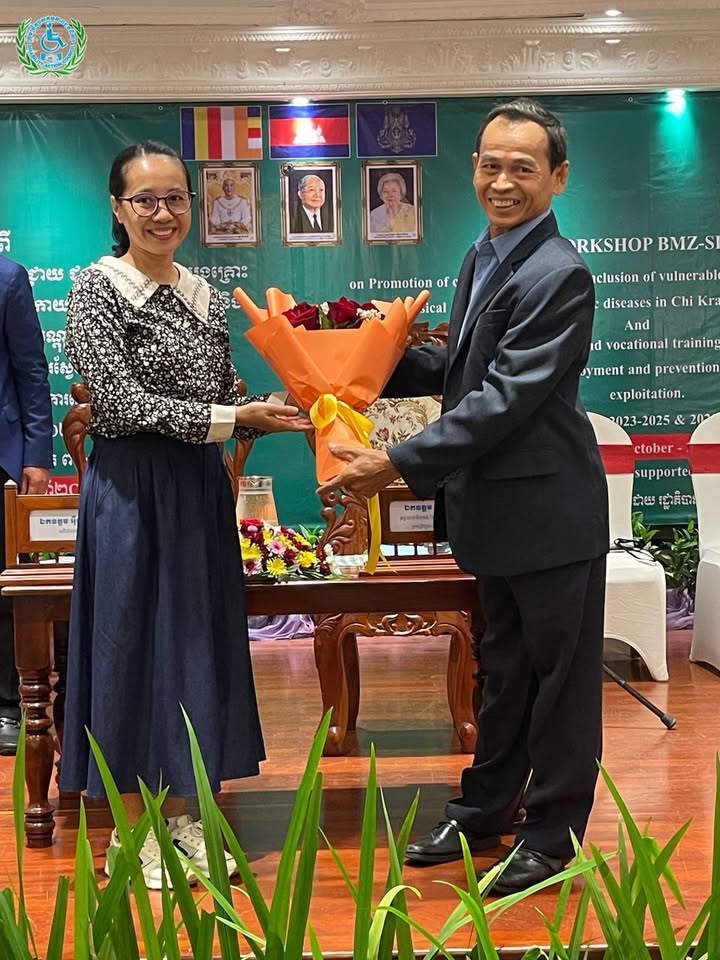 តំណាងអគ្គលេខាធិការដ្ឋានក្រុមប្រឹក្សាសកម្មភាពជនពិការចូលរួមក្នុងពិធីបើកសិក្ខាសាលានៅខេត្តសៀមរាប ខេត្តសៀមរាប៖ ថ្ងៃទី៣០ ខែតុលា ឆ្នាំ២០២៥ ឯកឧត្តម ស្រី ចាន់ អគ្គលេខាធិការរង ជាតំណាងឯកឧត្តម អ៊ុង សម្បត្តិ អគ្គលេខាធិការក្រុមប្រឹក្សាសកម្មភាពជនពិការ បានចូលរួមជាគណៈអធិបតីបើកក្នុងសិក្ខាសាលាស្តីពី «ការផ្សព្វផ្សាយលើកកម្ពស់ដ៏ទូលំទូលាយអំពីបរិយាបន្នសង្គមដល់ជនងាយរងគ្រោះដែលមានជំងឺផ្លូវចិត្តសង្គម រាយកាយ និងជំងឺរ៉ាំរ៉ៃ និងការលើកកម្ពស់លទ្ធភាពទទួលបានការអប់រំនិងបណ្តុះបណ្តាលវិជ្ជាជីវៈសម្រាប់កុមារនិងមនុស្សវ័យជំទង់ ដើម្បីជួយពួកគេក្នុងការស្វែងរកការងារក្នុងស្រុក ការពារការធ្វើចំណាកស្រុកដែលគ្មានសុវត្ថិភាព និងការកេងប្រវ័ញ្ចកម្លាំងពលកម្ម» នៅសណ្ឋាគាររីជេនស៊ីអង្គរ ខេត្តសៀមរាប។ សិក្ខាលានេះរៀបចំឡើងដោយអង្គការការីតាសខេត្តសៀមរាប ដោយមានការចូលរួមពីឯកឧត្តម អ៉ឹម គឹមលាង អភិបាលរងនៃគណៈអភិបាលខេត្តសៀមរាប តំណាងរដ្ឋបាលខេត្ត មន្ទីរសង្គមកិច្ច អតីតយុទ្ធជន និងយុវនីតិសម្បទា មន្ទីរសុខាភិបាល មន្ទីរការងារនិងបណ្តុះបណ្តាលវិជ្ជាជីវៈ មន្ទីរអប់រំ យុវជន និងកីឡា មន្ទីរកសិកម្ម រុក្ខាប្រមាញ់ និងនេសាទ មេឃុំ គ.ក.ន.ក អង្គការពាក់ព័ន្ធ ក្រុមជួយខ្លួនឯង វិស័យឯកជន និងជនមានពិការភាព សរុបប្រមាណ ៤៥នាក់ (ស្រីចំនួន ១៩នាក់ ជនមានពិការភាព ១៤នាក់ ស្រី ៧នាក់)៕